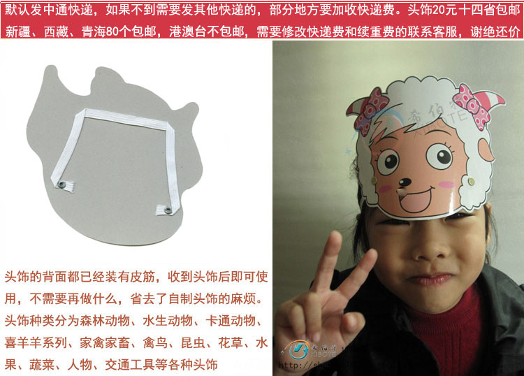 拔蘿卜、小壁虎借尾巴、小貓釣魚、狐假虎威、小蝌蚪找媽媽、丑小鴨的故事、小兔乖乖、小熊請客、三只小雞、小豬變形記、鳥窩里的樹、三只小羊和狼、小兔子找太陽、一顆鈕扣、龜兔賽跑、小馬過河、金雞冠公雞、蝸牛的獎杯、三只小豬、小紅帽、小熊拔牙、小豬變干凈了、聰明的**、下雨的時候、老鷹抓小雞、守株待兔、小猴賣圈、三只蝴蝶、金色的房子、棉花姑娘、我會飛、大灰狼和兔子、小羊和狼、狼和七只小羊。還有很多故事類頭飾**不列舉了,親們可以自己選購單個組合成故事類頭飾。