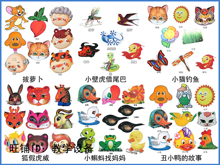 拔蘿卜、小壁虎借尾巴、小貓釣魚、狐假虎威、小蝌蚪找媽媽、丑小鴨的故事、小兔乖乖、小熊請客、三只小雞、小豬變形記、鳥窩里的樹、三只小羊和狼、小兔子找太陽、一顆鈕扣、龜兔賽跑、小馬過河、金雞冠公雞、蝸牛的獎杯、三只小豬、小紅帽、小熊拔牙、小豬變干凈了、聰明的**、下雨的時候、老鷹抓小雞、守株待兔、小猴賣圈、三只蝴蝶、金色的房子、棉花姑娘、我會飛、大灰狼和兔子、小羊和狼、狼和七只小羊。還有很多故事類頭飾**不列舉了,親們可以自己選購單個組合成故事類頭飾。