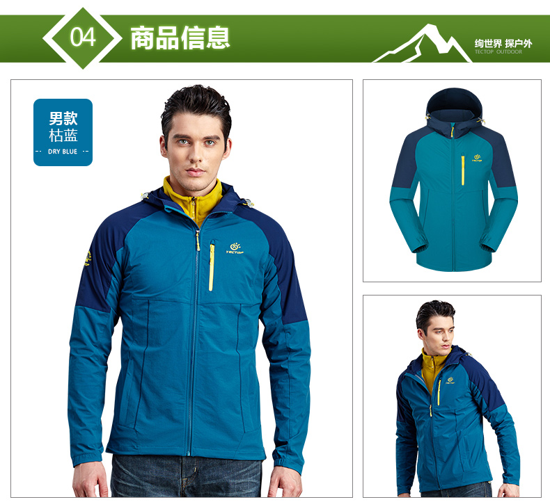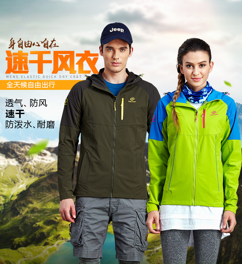 TECTOP探拓 秋季戶外拼色彈力風衣男女耐磨薄款休閑外套 JL6877