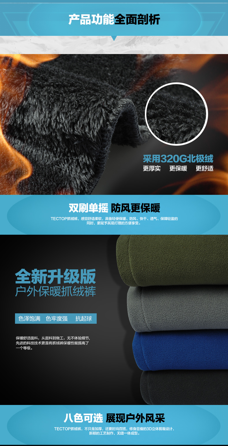 2015新款 tectop 男款北極絨抓絨褲 PW5121