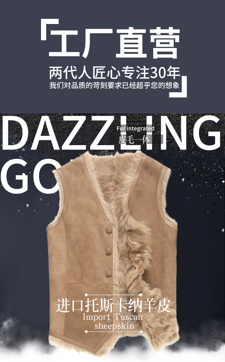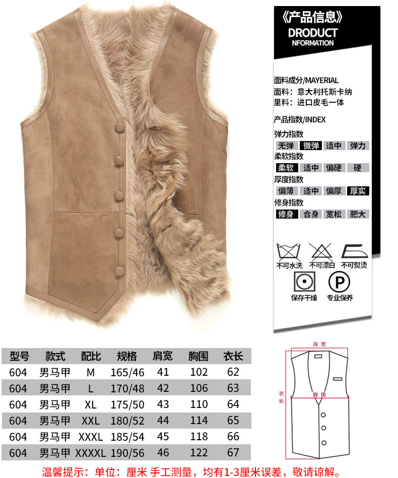 冬季皮毛一體皮馬甲男士托斯卡納綿羊皮羊毛加厚背心坎肩中老年