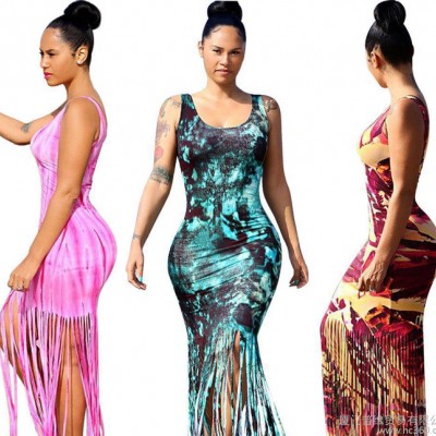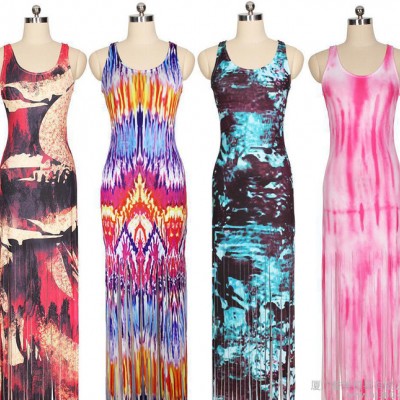 | 外貿新款性感系帶連衣裙 亞馬遜貨源條紋 印花裸背長裙 速賣通 W1617