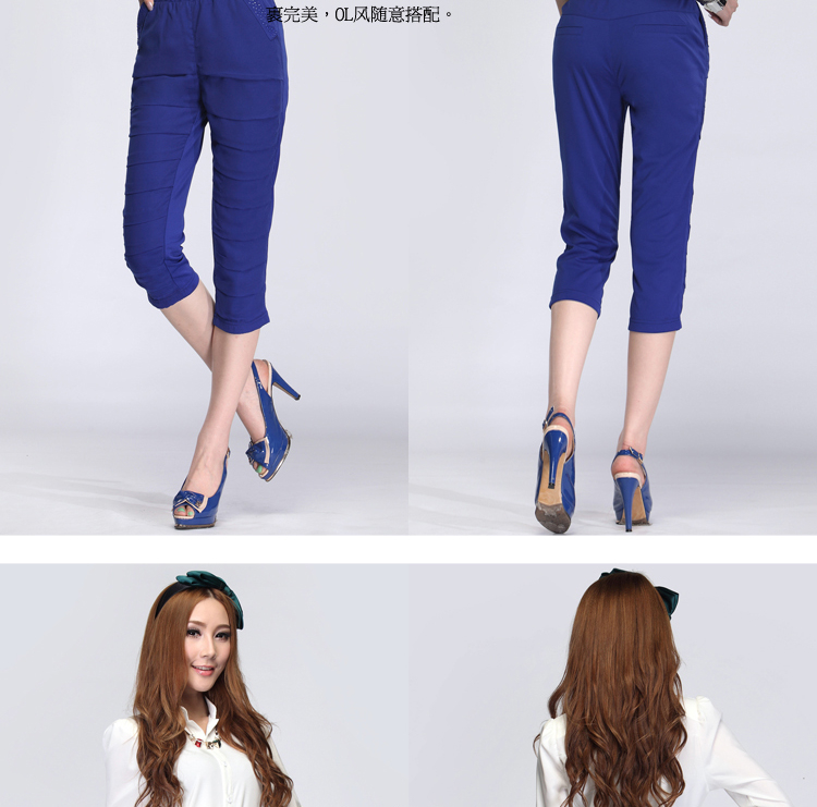 供應纖雨戀83396纖雨戀83396雪紡拼接褶皺中褲