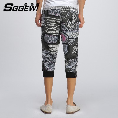圣格威2015男士運動七分褲亞麻休閑褲 非主流哈倫褲子7分褲潮男褲