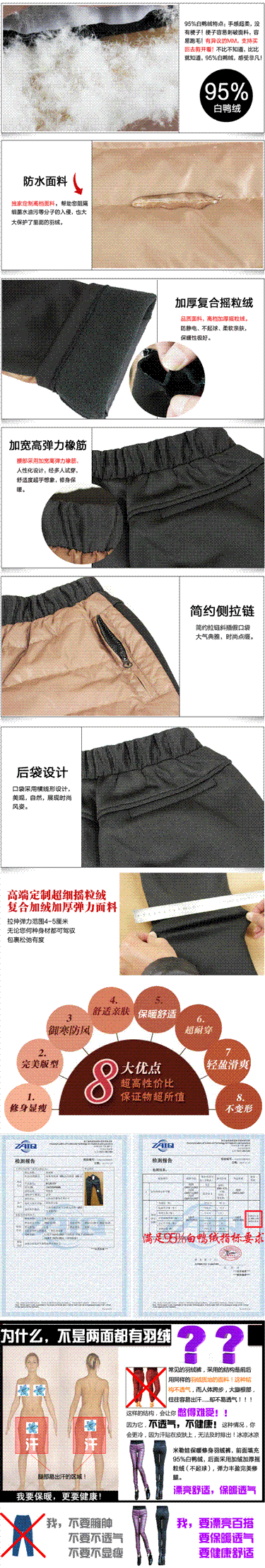 | 設計要點**的剪裁,凸顯女人優雅的臀線;簡潔大氣的版型,勾勒出清晰纖長的腿部線條,展現曼妙身段;雙料搭 配, 時尚顏色的碰撞,讓您在溫暖中駕馭潮流 ;簡約側拉鏈斜插口袋,大氣典雅,時尚點綴,傳達女性的婉 約之美 **強賣點:拉鏈/口袋/羽絨/加厚/修身/拼接 |