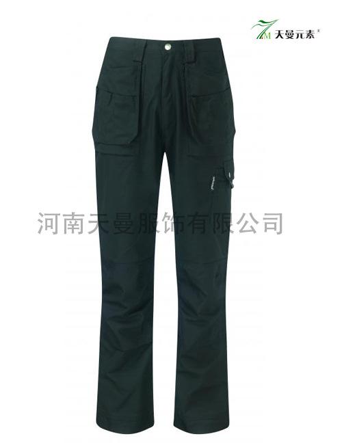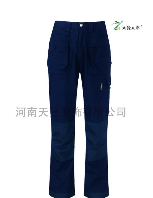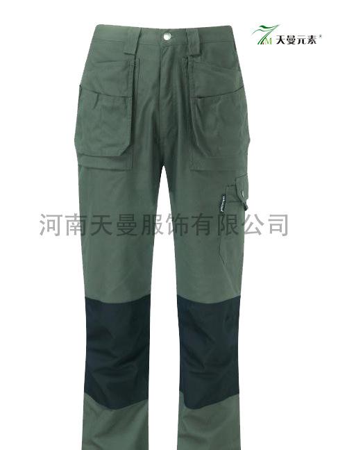 布料:65% 滌綸 35% 棉,帆布,每平方米克重300, 兩個后背臀部貼兜,附加一層Cordura 耐磨膝蓋布,多個Cordura 耐磨帶蓋工具帶囊.