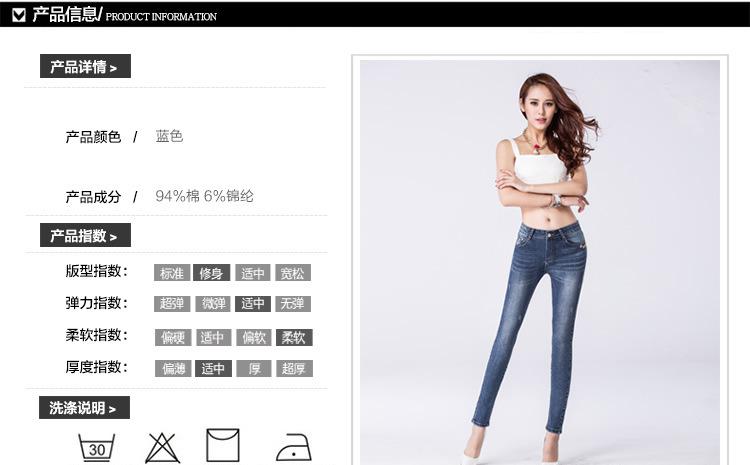 首頁 > 供應(yīng)產(chǎn)品 > 2015春裝新款韓版低腰顯瘦修身長褲彈力女士小腳牛仔褲 NC303084