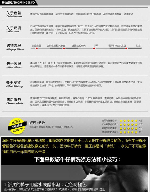 | 褲長:長褲 | 誤差范圍:1-3cm | 尺碼:29,30,31,32,33,34,36,38 |