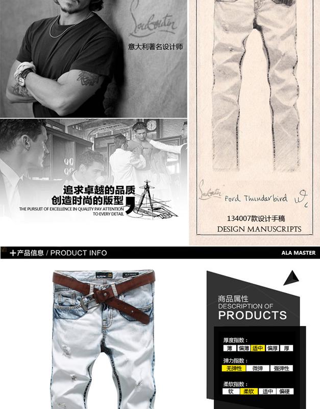 | 水洗:選用**炒漂、吊磨、割爛重水洗工藝,呈現(xiàn)不一樣的質(zhì)感,更具型男范 | 貨號(hào):134007 | 褲型:直筒型 |