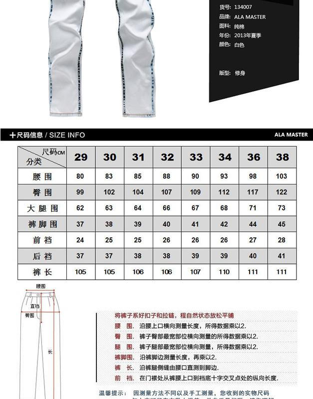 | 尺碼:29,30,31,32,33,34,36,38 | 外貿(mào)類型:出口 | 褲門襟:拉鏈開襟 |