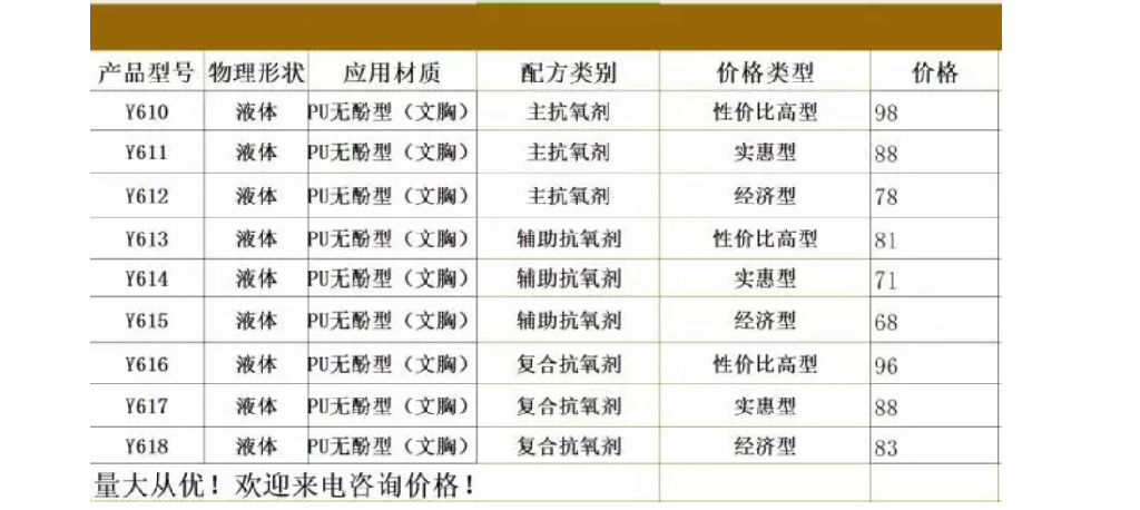 | 類型 | PU無酚型文胸專用抗氧劑 |