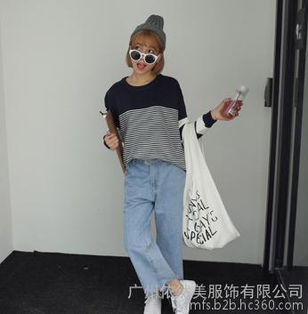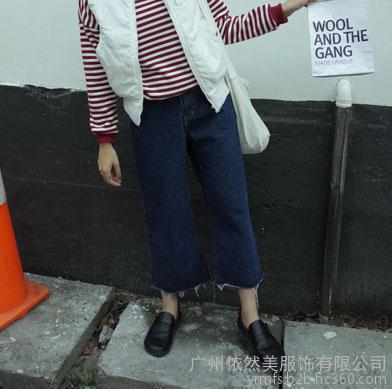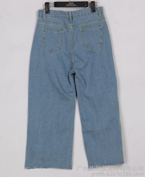 品名:K27157 2016韓版女孩休閑大碼長褲 做舊牛仔褲百搭面料:牛仔彈性:無拉鏈:有內襯:無口袋:有其他配飾/附件:無