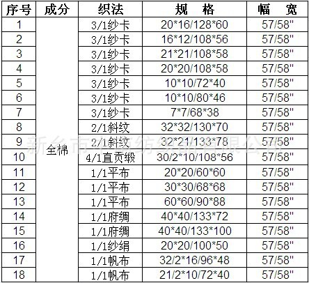 新鄉(xiāng)市中南全棉染色面料產品目錄: