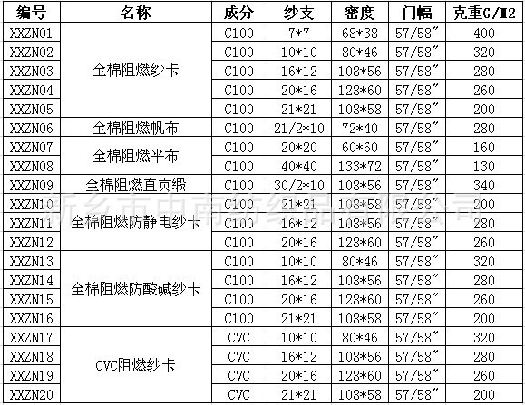 新鄉(xiāng)市中南阻燃面料產品目錄: