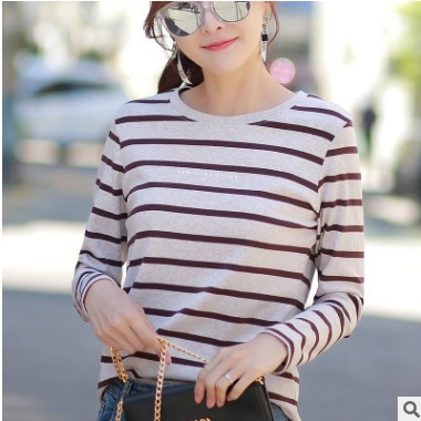 長袖t恤女裝寬松韓版打底衫秋季2020新款條紋秋裝上衣服潮