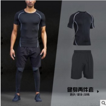 廠家直銷跑步運動套裝男夏 新款速干休閑健身衣套裝 短袖短褲套裝