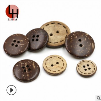 專業批發天然椰子鈕扣四眼兩眼虛線環保扣子毛衣兒童服裝裝飾紐扣