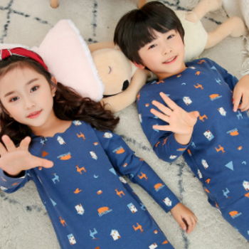 新款兒童純棉內衣秋衣套裝棉毛衫棉毛褲家居服保暖可愛卡通
