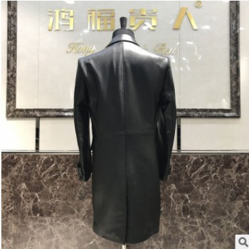 海寧秋冬時尚精品男裝2017新品長袖翻領男式真皮皮衣中長款外套