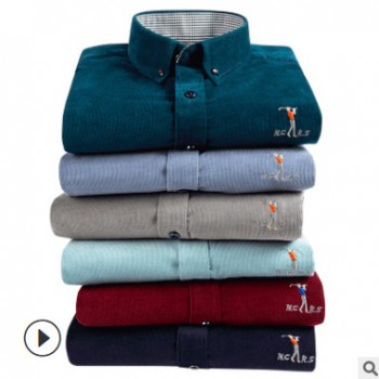 2020男士燈芯絨純棉柔軟襯衣精致繡花男士休閑襯衫中青年爸爸內襯