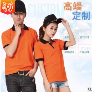 來圖定制翻領短袖工作服印制廣告衫團隊活動t恤文化衫定做班服
