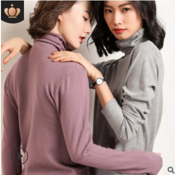 女式毛衣秋冬新款 修身百搭堆堆領套頭女士打底衫短款針織衫