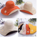 網(wǎng)紅小雛菊女帽子雙面戴漁夫帽夏天防曬太陽帽韓國菊花刺繡遮陽帽