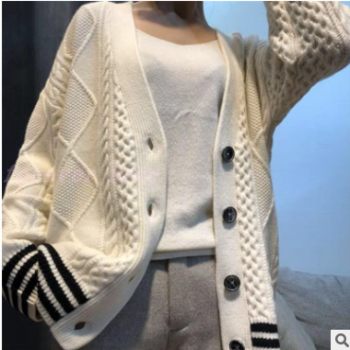 新品羊毛衫女v領開衫韓版毛衣外套女2019秋季寬松羊毛針織開衫潮