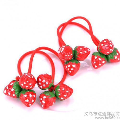 直銷新款可愛小草莓兒童發繩發圈頭飾發飾小商品扎頭發紅繩卡通水果圖案珞薇