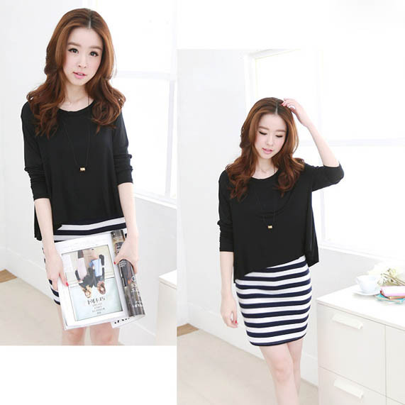 2014秋冬新款 純色短上衣 后背開縫 系帶縫合 條紋包臀背心 時尚搭配 甜美氣質女式休閑套裝