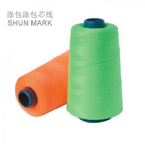 包芯線的工藝:由滌綸聚酯短纖維經(jīng)精梳工藝制成,中間植入一根連續(xù)性滌綸長(zhǎng)絲,以達(dá)到增強(qiáng)拉力的效果。成品由分散染料130℃高溫染色制成。
