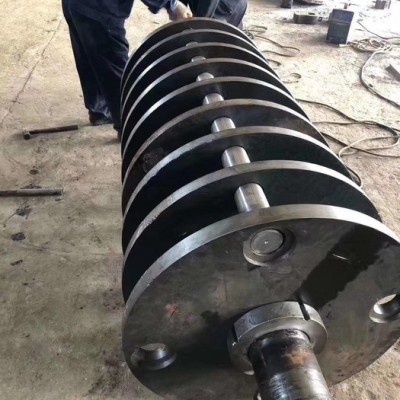 主軸的錘板、軸、隔圈、錘頭銷軸均采用合金材料。錘板上工作面采用堆焊,形成高強(qiáng)度耐磨層。磨損后可以重新堆焊反復(fù)修復(fù),節(jié)省使用成本。破碎錘數(shù)量為10個(gè),滾壓錘數(shù)量為13個(gè);主軸軸承采用lyc軸承,可以承受200℃的高溫,并經(jīng)嚴(yán)格的工藝預(yù)試對(duì)軸承游隙進(jìn)行了優(yōu)化。針對(duì)主軸承受變動(dòng)載荷和設(shè)備使用工況,主軸軸承采用油脂潤(rùn)滑,主軸上的破碎錘和滾壓錘采用特有的楔形排布技術(shù),可以使廢鋼在開度方向99%的破碎,成產(chǎn)效率更高。