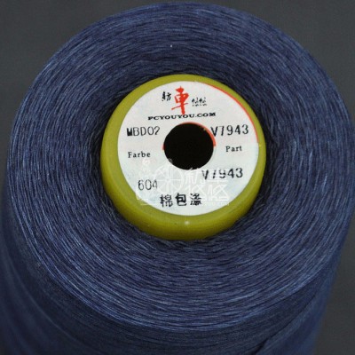 棉包滌包芯線,是紡紗的時候由純棉短纖維包覆一束滌綸連續長絲,然后將這些紗合股做成線。芯線滌綸連續長絲的比例在這種線的結構比例上占到大概65%