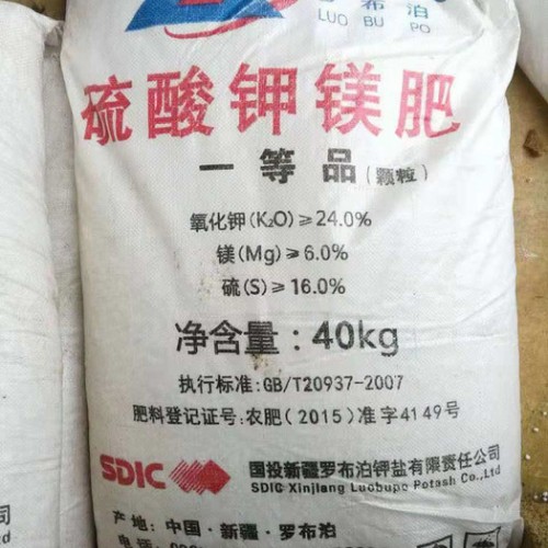 硫酸鉀鎂,亦稱硫鎂鉀、含水硫酸鉀鎂。是指一種多元素鉀肥。除含鉀、硫、鎂外,還含有鈣、硅、硼、鐵、鋅等元素。硫酸鉀鎂肥一般含S22%,K22%,Mg19.4%。硫酸鉀鎂肥是利用含有硫酸鉀鎂的天然礦,經過數道工序加工制成,能為作物提供鉀、鎂、硫等養分。硫酸鉀鎂肥呈弱堿性,較適合酸性土壤施用,一般作基肥,也可作追肥和葉面噴肥。適用于多種大田和經濟作物。與等鉀量**、硫酸鉀相比,肥效相當或略優。中國已有多家公司生產硫酸鉀鎂肥。